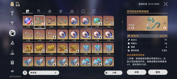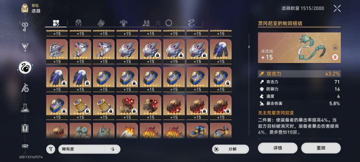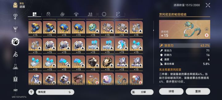 刷了4个月仪器,没一个能用的,图上全是小生命,小攻击,我现在不求双暴了,能来一个攻击力都不错了,内圈4个月,攻击绳子不超过20个,米哈游真有你的。