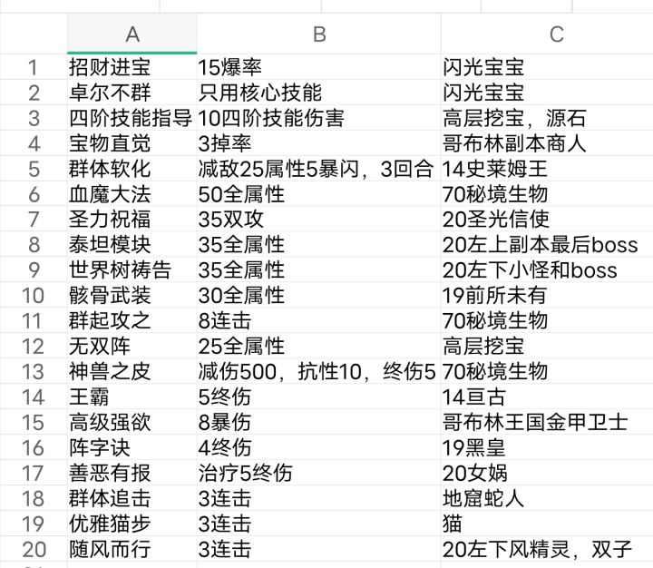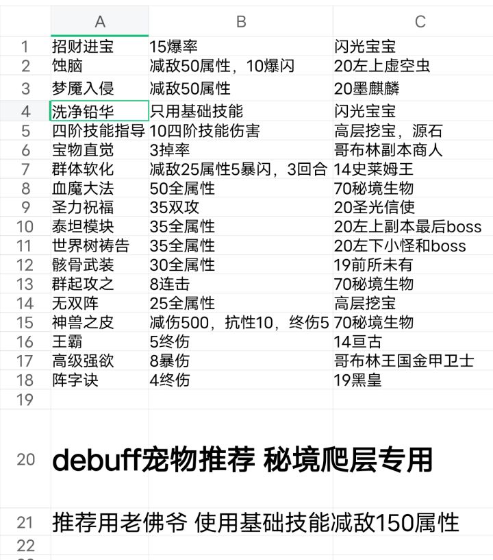 在做宠物,直接整理了一套技能和大致排名。1-16基本必选,后面的就随意选了。16后面是完全可以不要的,后期提升很小,其他孔数也可以打加速度的。