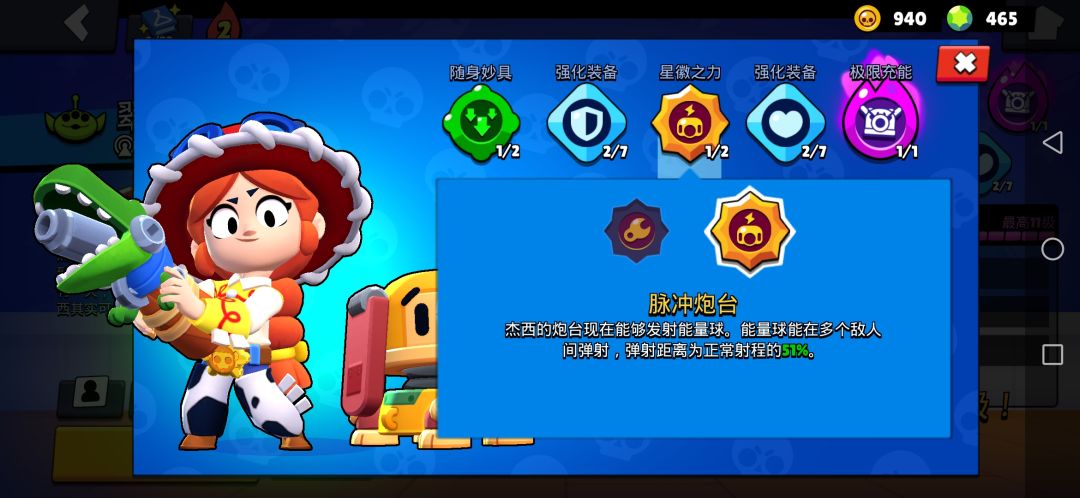 - 效果:杰西的炮台攻击会附带减速效果,持续1秒。