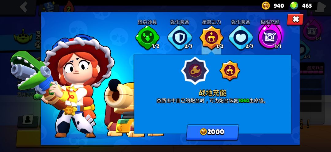 ①充能炮台:炮台攻击为杰西充能,更快刷新大招。