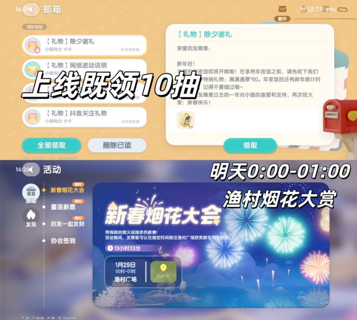 明天0:00-01:00小镇烟花大赏锁定渔村上映