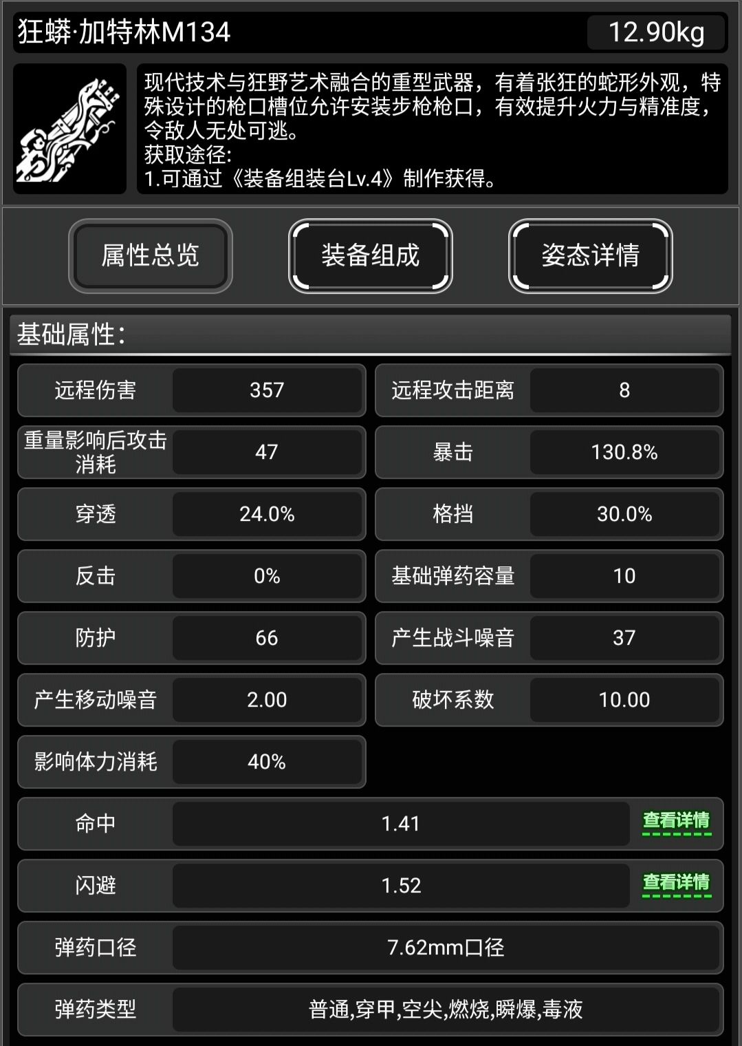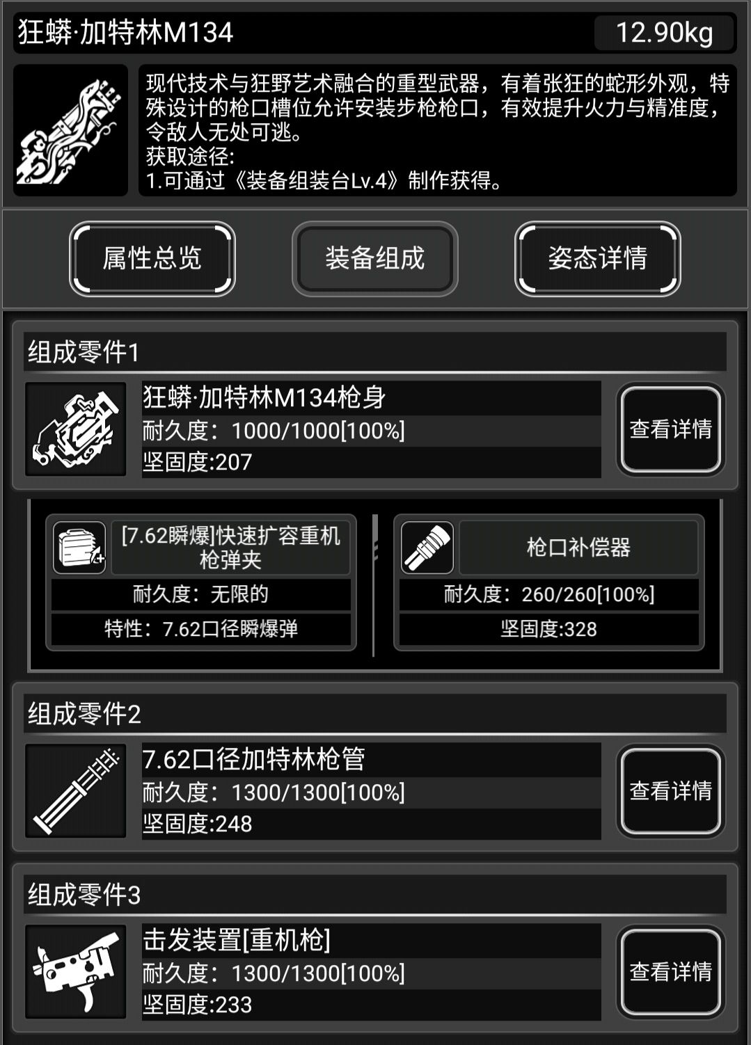 关于零件的组成以及可以用哪些零件,可以去总帖查看原本加特林的组成,两者都是一样的。