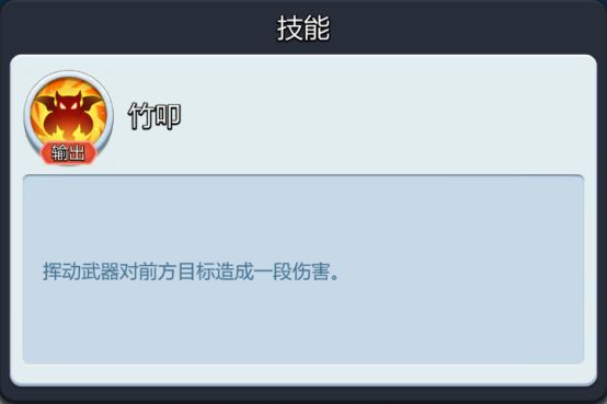 技能介绍:挥动武器对前方目标造成一段伤害。
