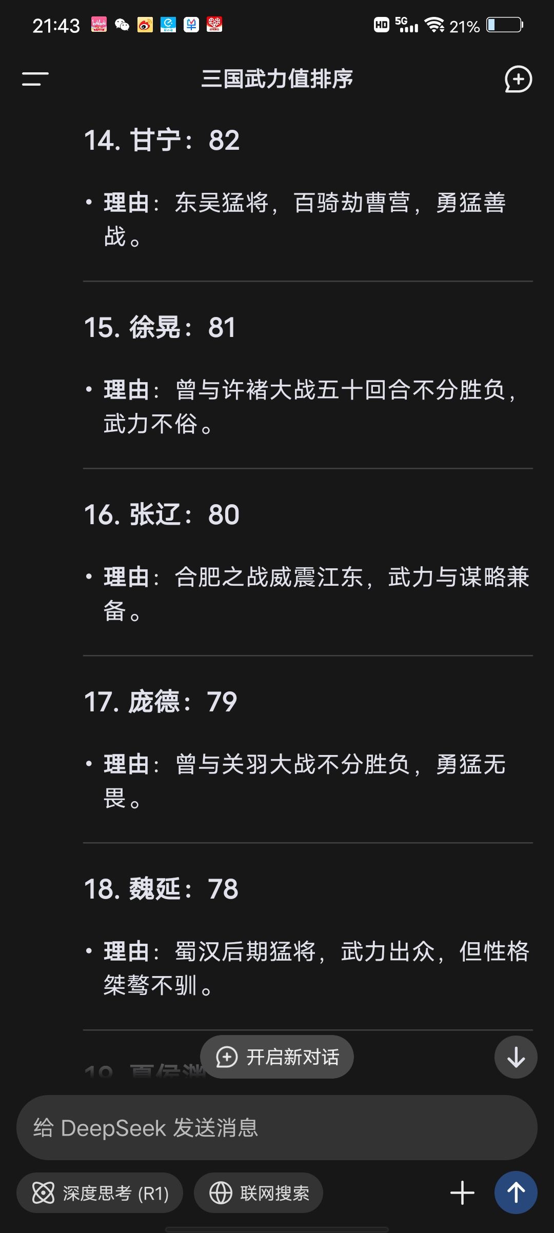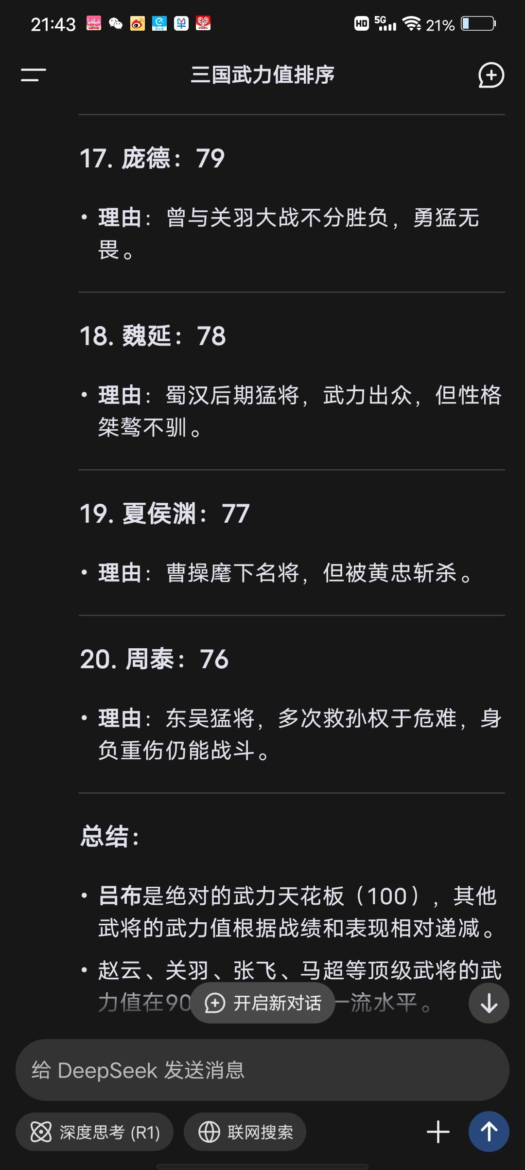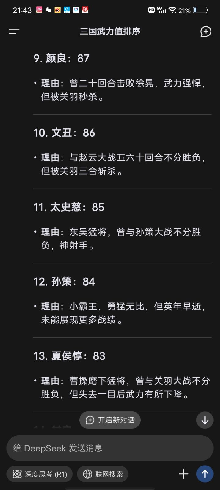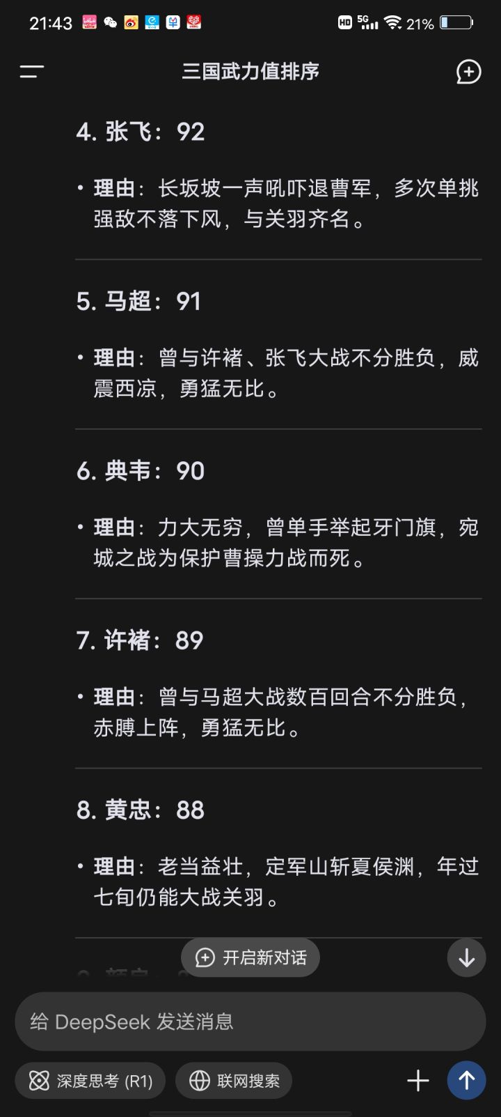 最近比较火的deepseek,武将武力排名