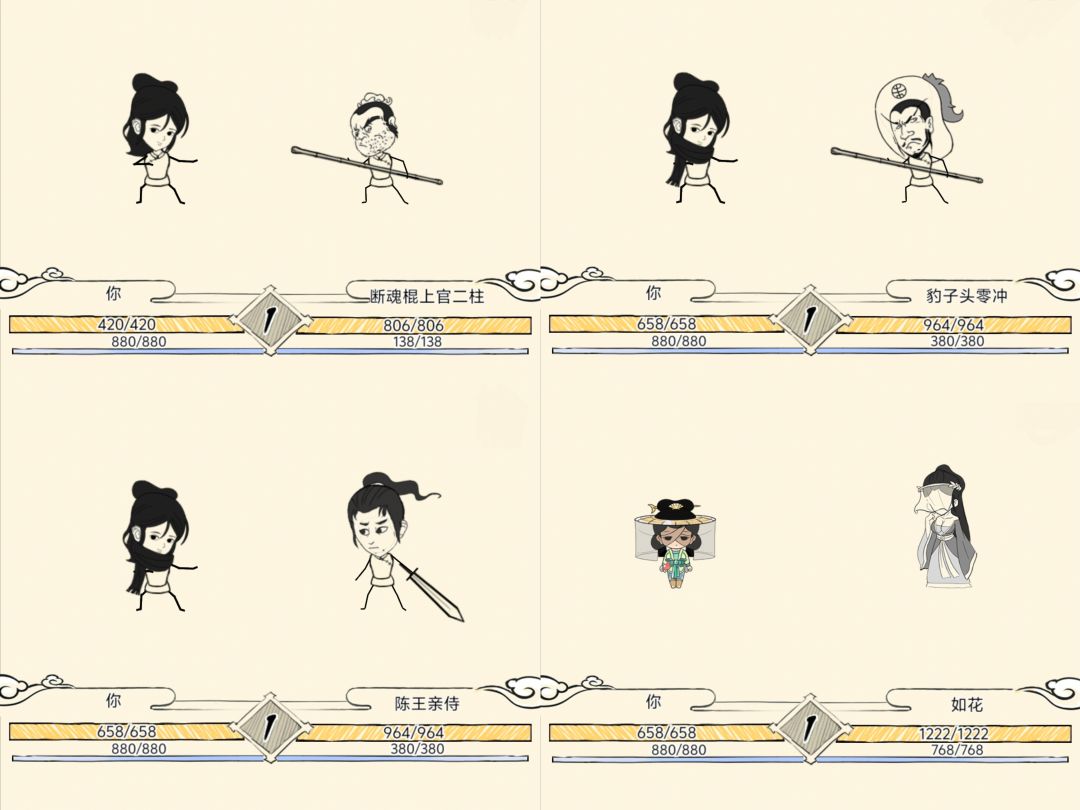 👉 任务推进需对战断魂棍上官二柱 (粗懂皮毛)、豹子头零冲 (粗懂皮毛)、陈王亲侍 (粗懂皮毛)、如花 (初出茅庐)