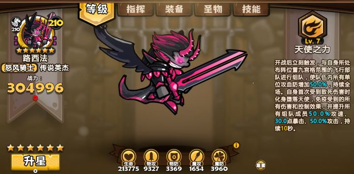 三、实战技巧与细节把控 1. 站位优化:将路西法置于第二排中央,避免开场被集火,同时确保技能覆盖最大化。 2. 免疫期利用:触发堕落天使后,迅速调整阵型,将残血单位后撤,路西法顶前吸收火力。 3. 资源优先级 等级 加 圣物 无条件满属性