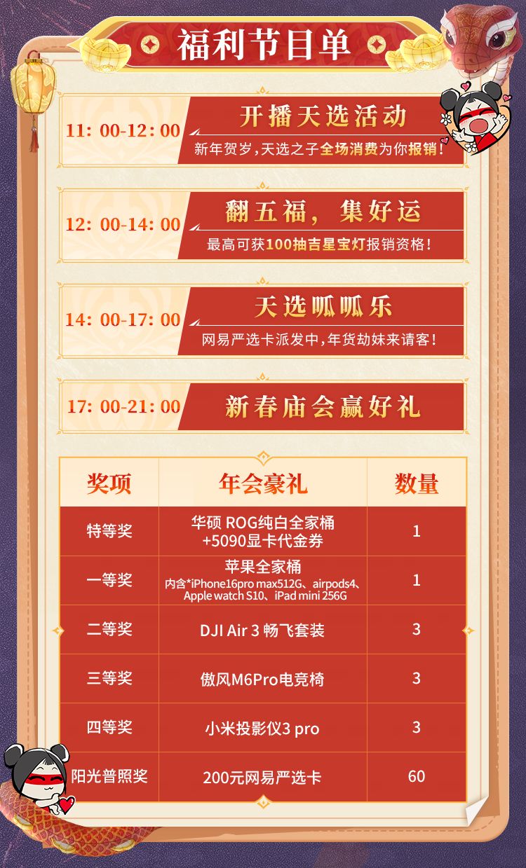 大年初一到大年初三,每日十一点起,福利不停,持续大放送!