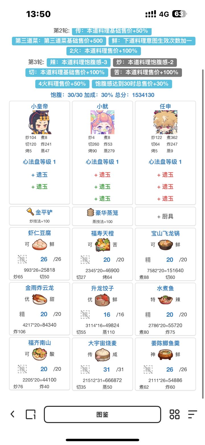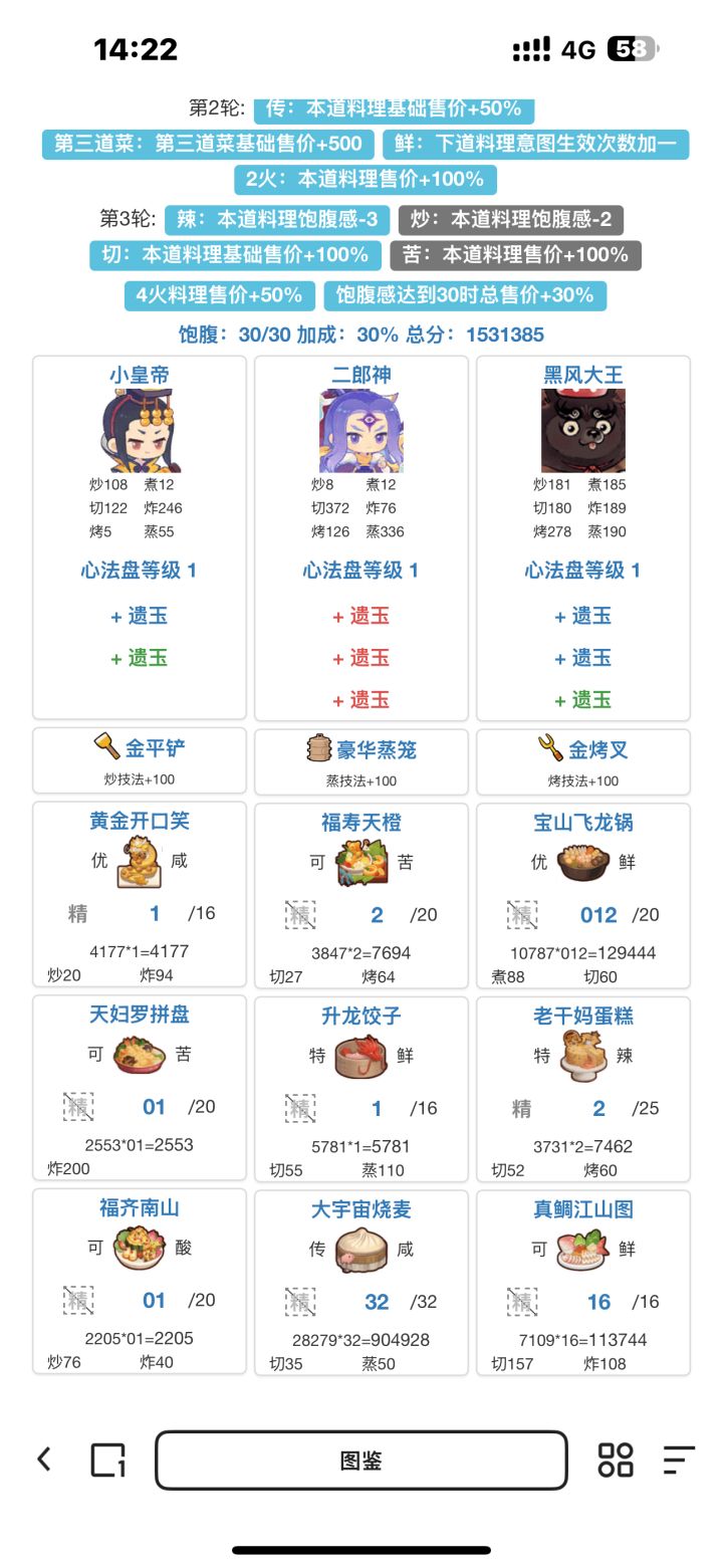 1号和3号位厨师可以根据自己情况换 尽量吃售价意图 满足饱腹要求就行 主要得分是在二号位