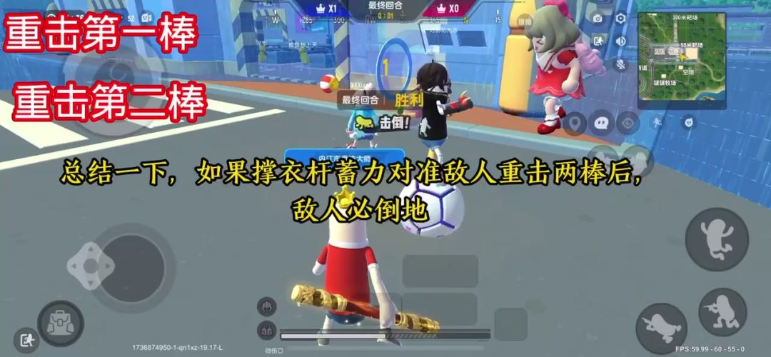 A视频总结:蓄力下落可触发重击,重击两棒后,敌人必倒地。