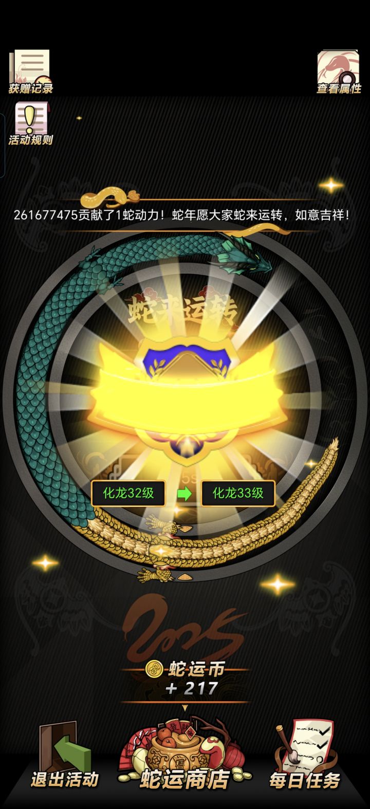 我以为黑骑送的是蛇运值,其实是蛇动力。看来是我眼睛看劈叉了