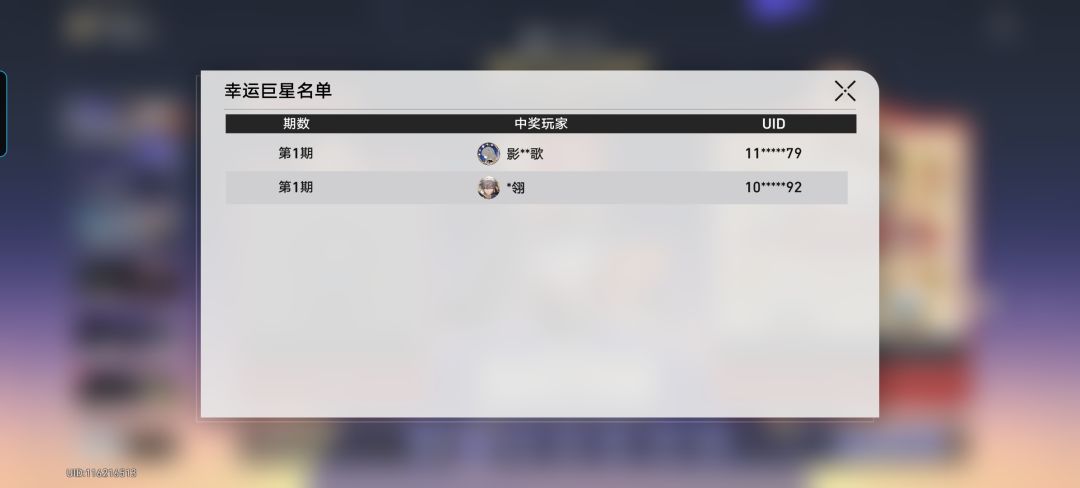 所有玩家都可在游戏内看到两名中奖者的简略信息