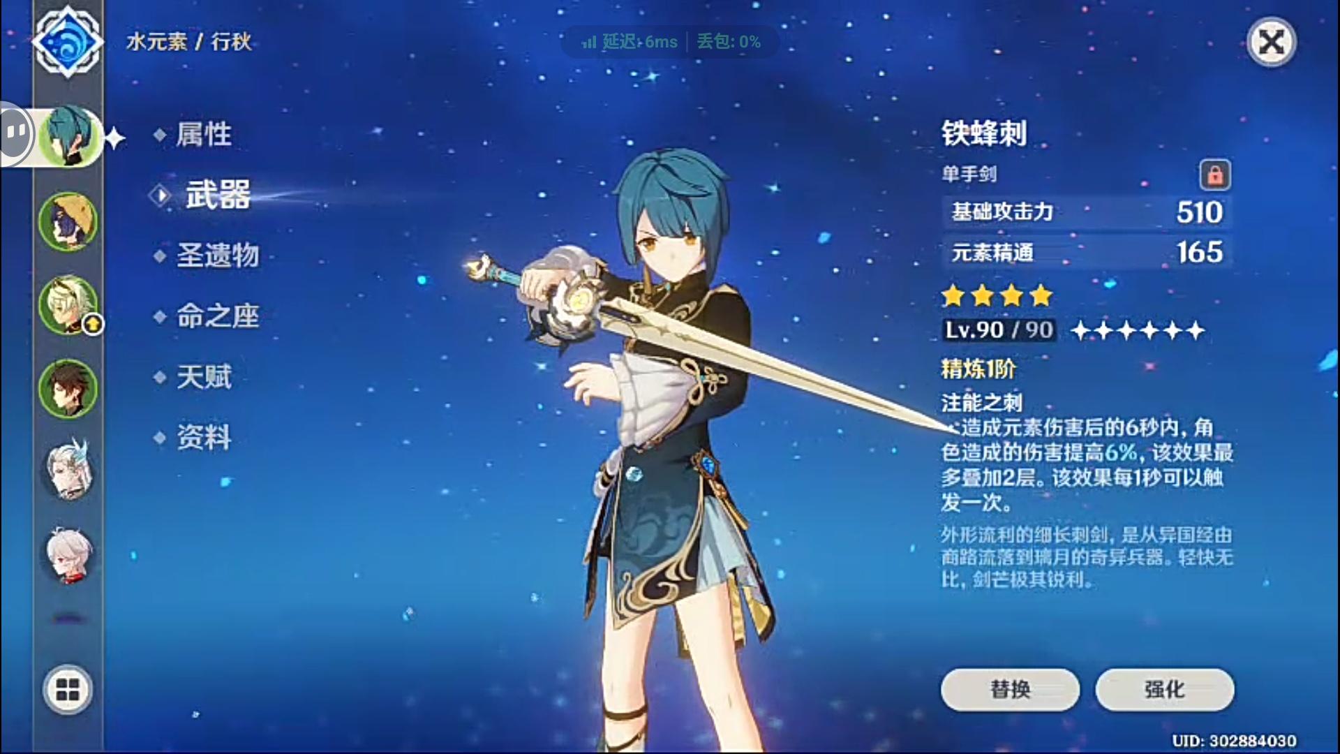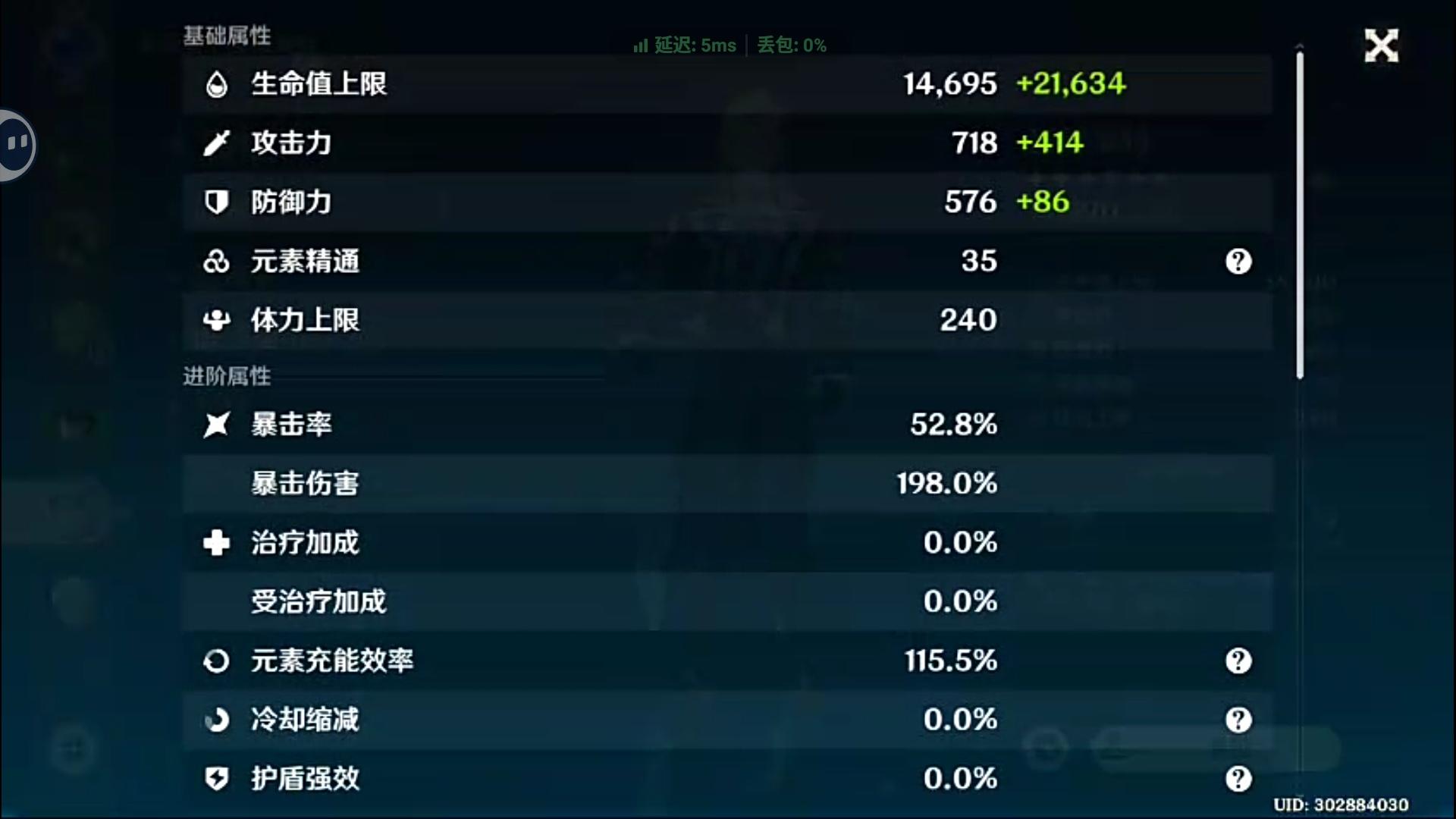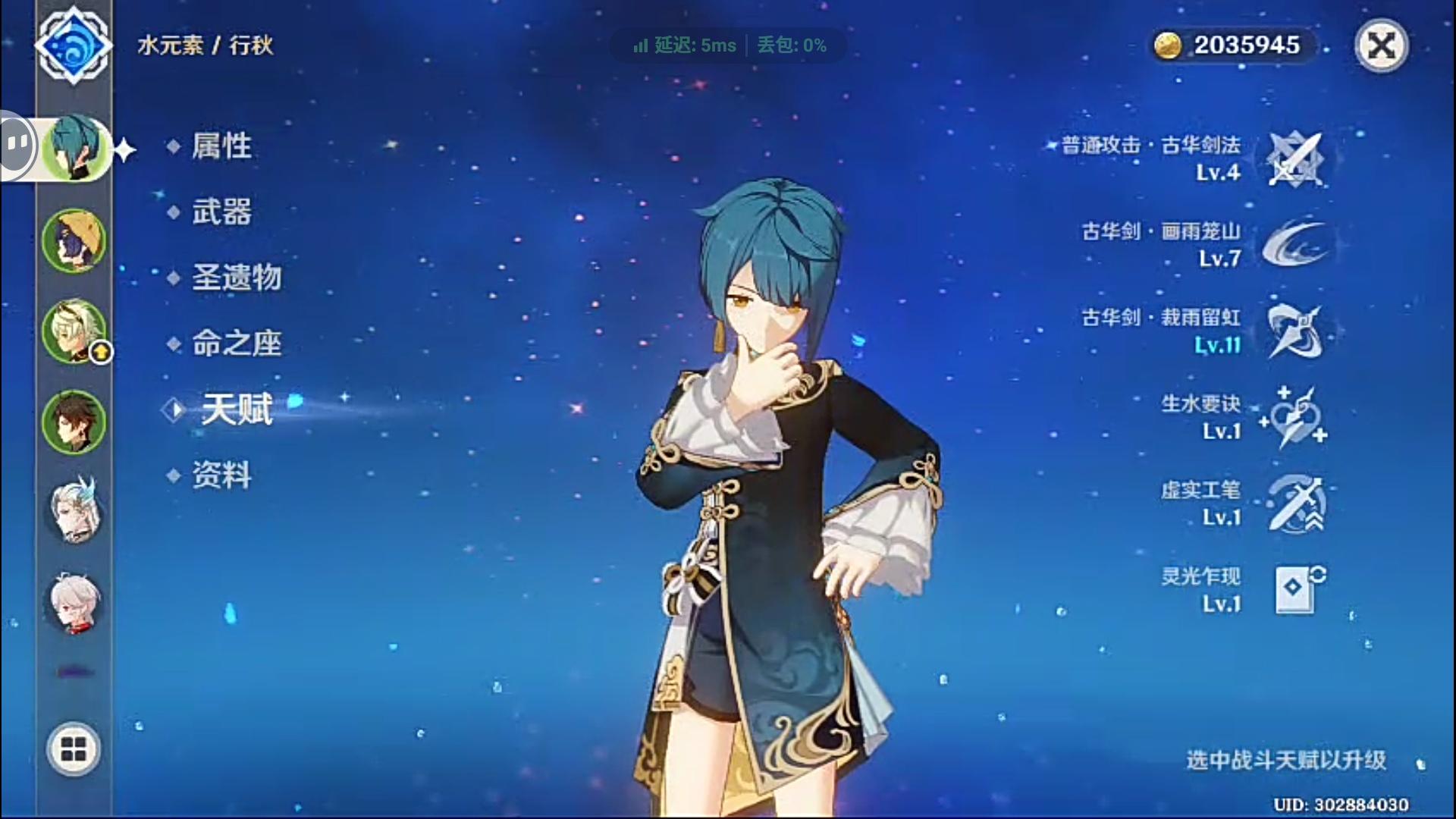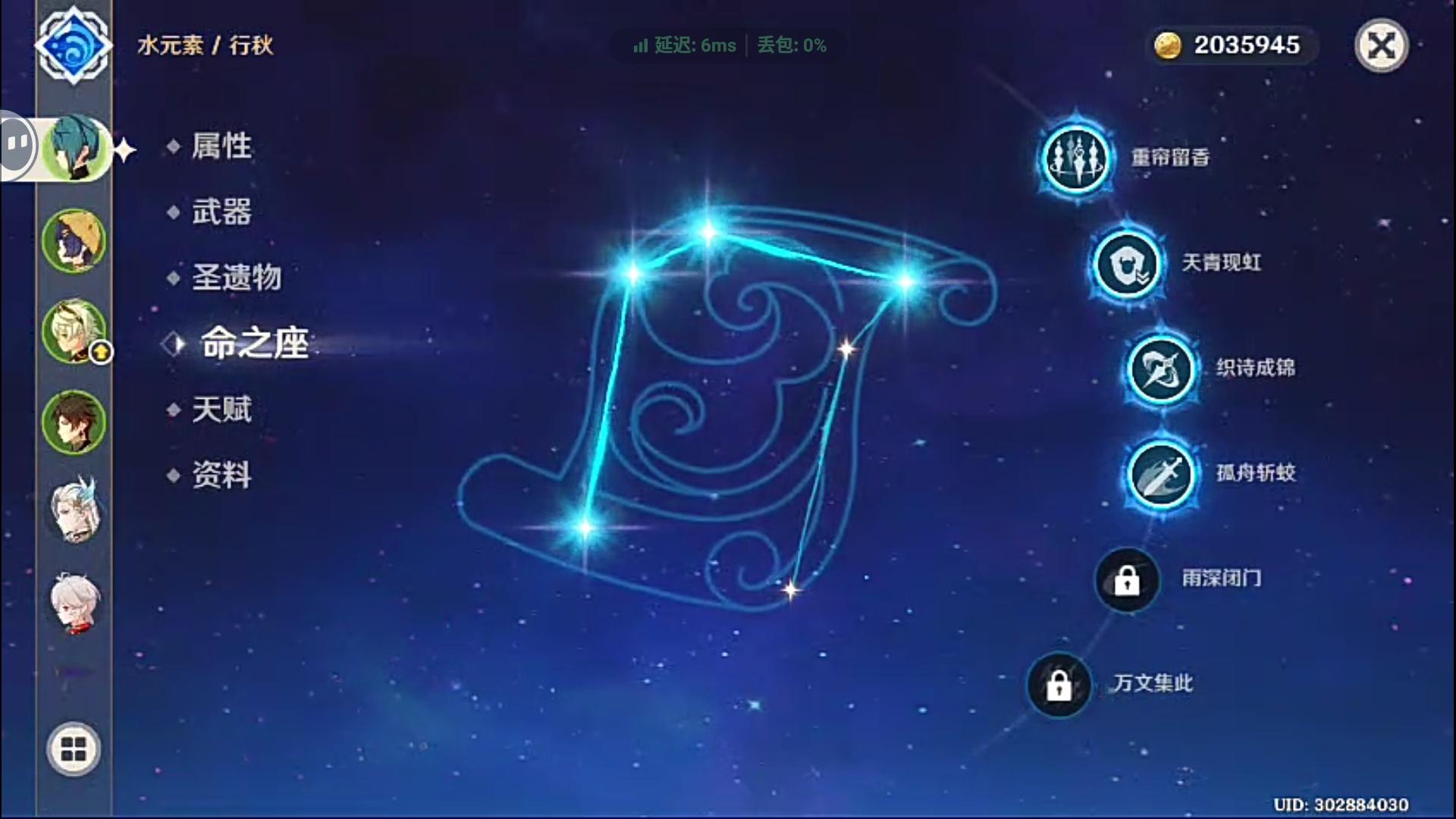 图为更换后的圣遗物,行秋平时不用这一套,龙王的不变