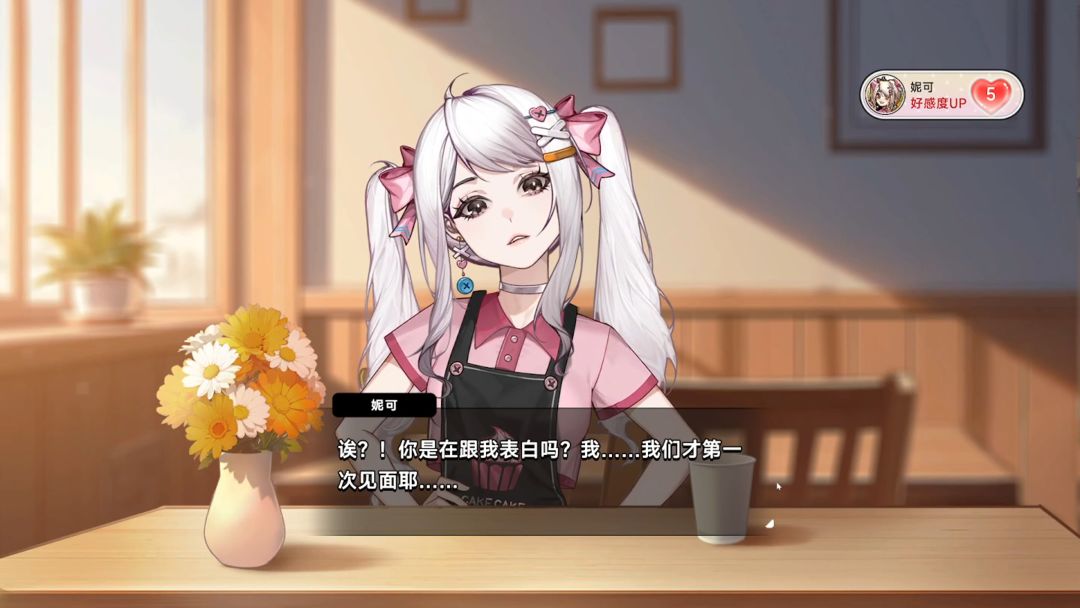 在游戏中我们将遇到四位风格迥异的姑娘宅男白毛控的梦想——一头银白色的双马尾,甜美可爱的长相,性格天真爱打游戏,一边做着游戏主播,还一边蛋糕店打工,初次见面,就为我带了一份亲手制作的甜甜圈,这一下直戳我的心巴。但话又说回来,这样的女孩做女朋友确实很快乐,但对于相亲来说,我认为并不适合(传统山东人观念)故此我也没有过多攻略。