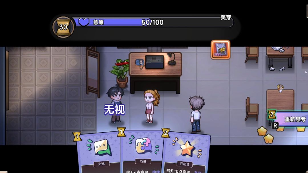 想要有人相亲,咱得有男有女不是,让我一个社恐看后大为震惊的设定就出现了,我需要亲自到大街上去寻找单男单女(单身男女),这里游戏巧妙的将吸引男女入会做成了卡牌构筑游戏的玩法,合理的构筑自己的牌组,提升对方的入会意愿的同时提高入会费用,狠狠的敲上一笔!