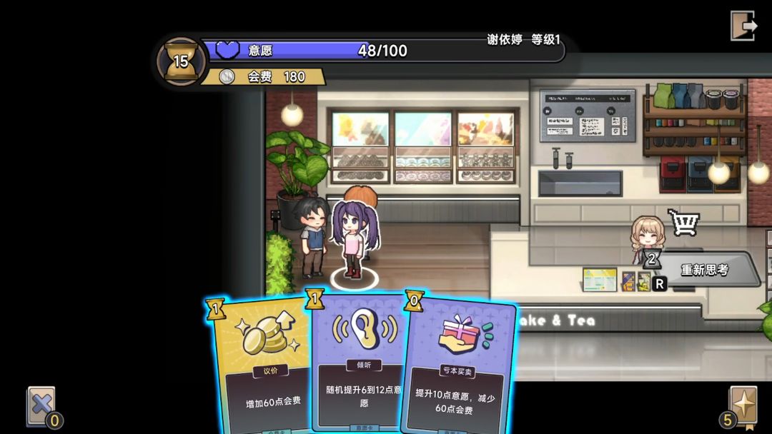 本作将这种模拟经营的玩法与视觉小说的内容进行融合,其实初见还是有些新颖的,他的模拟经营并不像开罗系列游戏那样的呆板,其中还内置了卡牌玩法,随着等级的提升,还有更加难拿下的客户,那么你就要不断的去优化自己的打法。