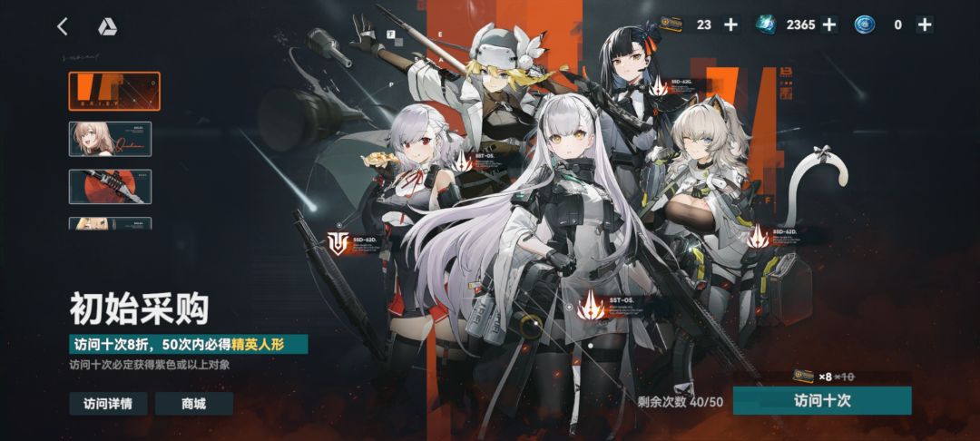 新手初始采购:50抽的保底池子只需要40张票,出什么都无所谓,不影响游戏前期体验