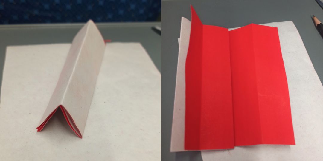 再以中间对折,然后展开一边缘。