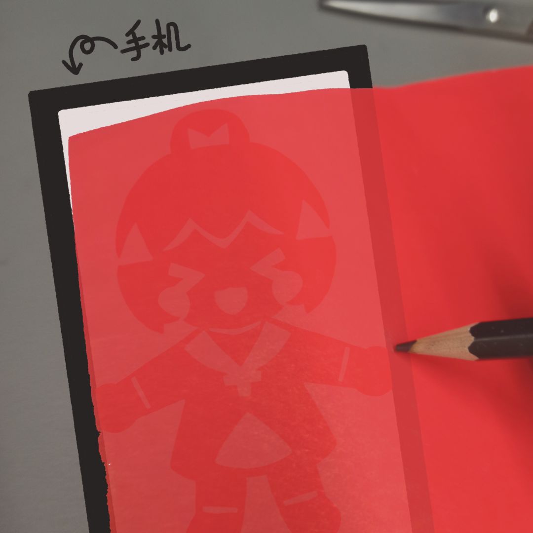 继续把手机垫在纸下,透过光描出边