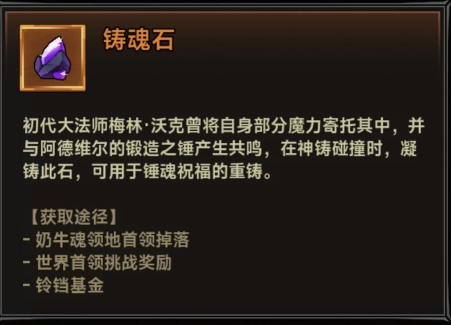 3、铸魂石,修改神铸的消耗材料,几乎全靠每周的世界boss获取和偶尔出现的为期一周的限时活动。
