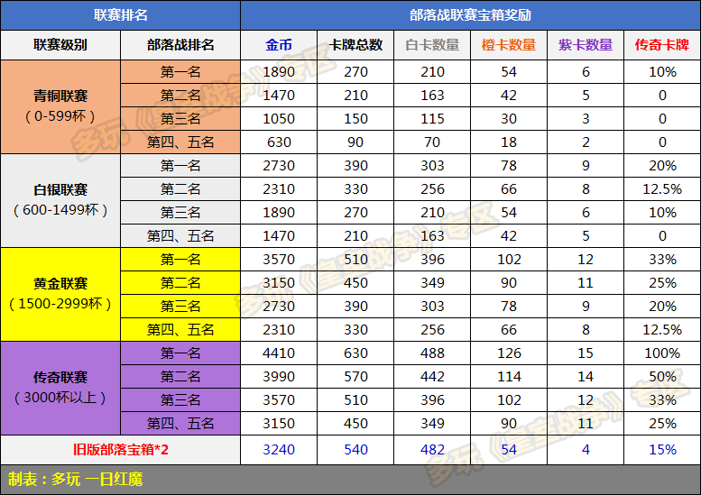 2017年1月13日更新以后部落宝箱奖励表: