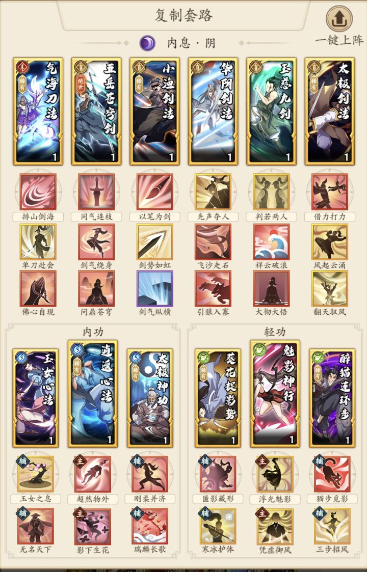 另外总结下阴剑的特点,在新区阶段,前5剑爆发是够的,但是没续航,5剑不死基本第二轮就g,所以核心思路就是死堆前5剑爆发以及尽可能拉条,争取华阴鱼刺秒人,对比阳4系,阴剑爆发不输,输就输在没有阳奇拉条续航,没有阳刀续航,第一轮秒不了,第二轮就输定了