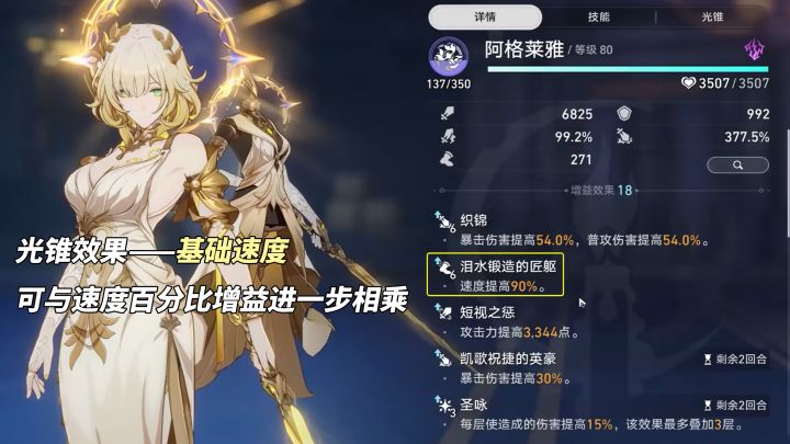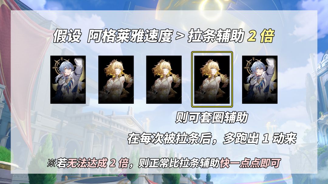 对阿格莱雅来说,影响3个方面:达成速度阈值的练度压力、能否‘行动条上套圈’拉条辅助、速度转化为攻击力的数值。