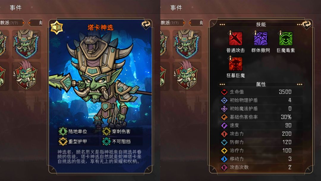 推荐打法:带无视控制区域的群体输出,伤害不够别碰(最慢7回合秒它),输出够打就非常轻松,输出不够没群伤就是挂机噩梦,挂机模式下商人中最强,还要祈求敌方不要有逆天buff(隐身、反弹、再生、法强、迅捷)和逆天精英怪。有路径AI会主动打boss