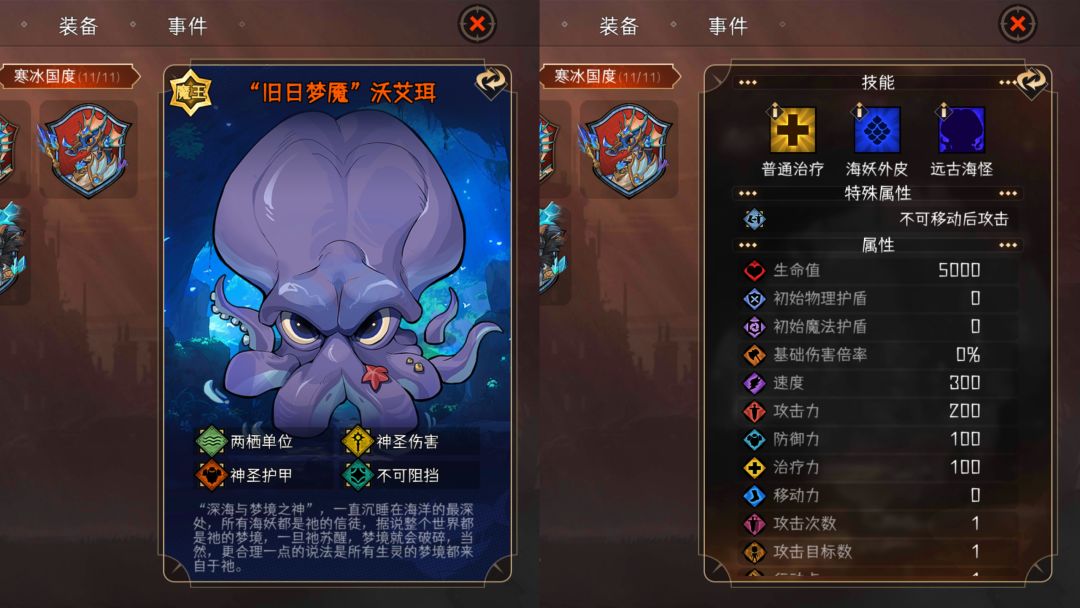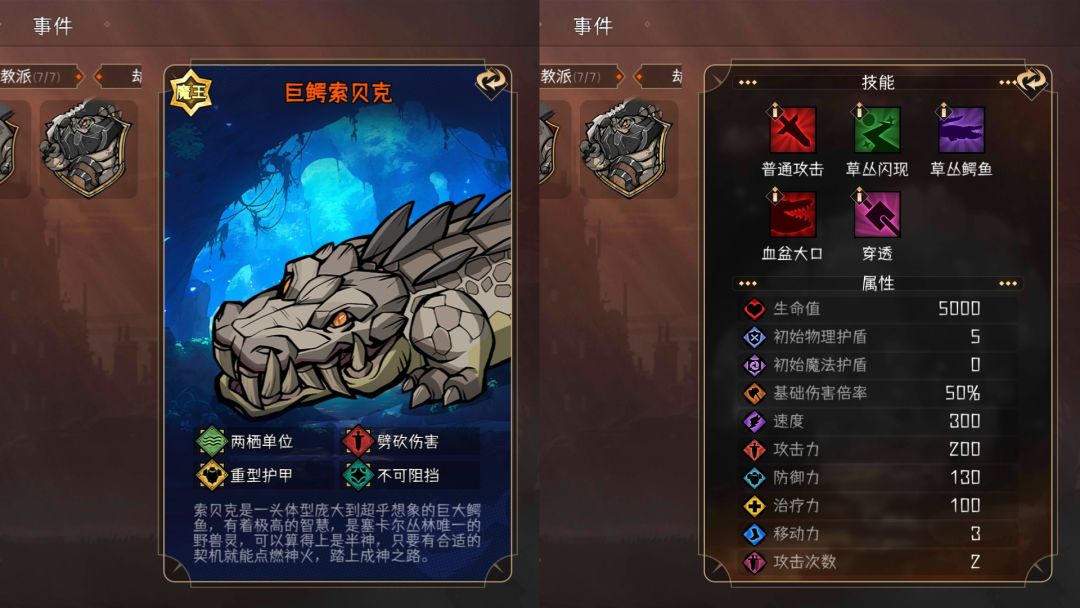 推荐打法:如果有两层物理盾,可以在狂暴前无伤拿下,两次普攻是他的唯一输出手段(破甲、连击除外),也可以用飞行buff把角色丢水里去打,boss陆地生物无法还击。