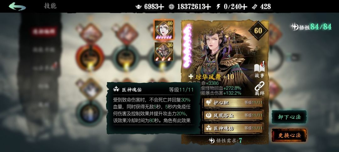 医学副卡给武学主卡或医学主卡释放关联技能可回复气血
