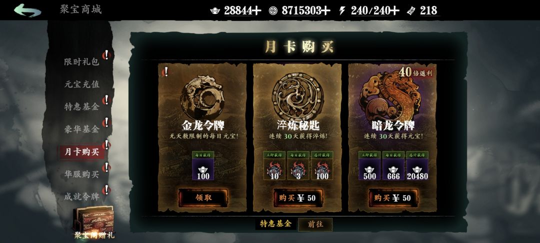 要氪金,淬炼月卡必氪