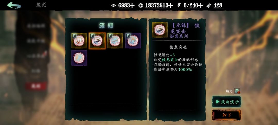 铭刻是现在论剑核心之一,黑洞/天雷,铁蛋/女王,吹风/变红/拈花指,都是自由搭配,引发各种化学反应