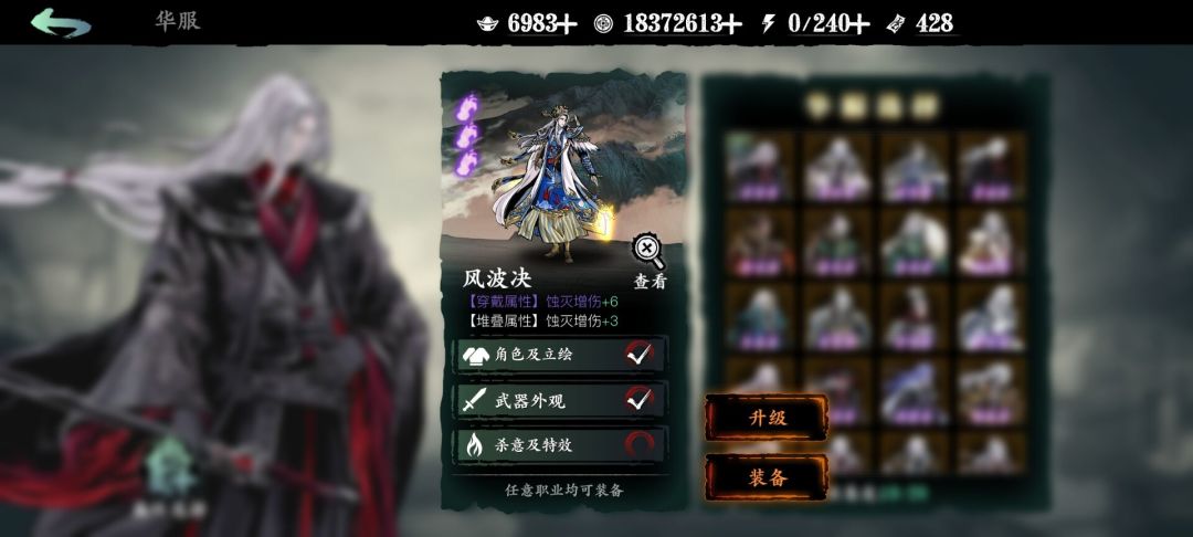 第一套198华服提升9点蚀灭,性价比还可以,第二套只有堆叠的3点,量力而行吧