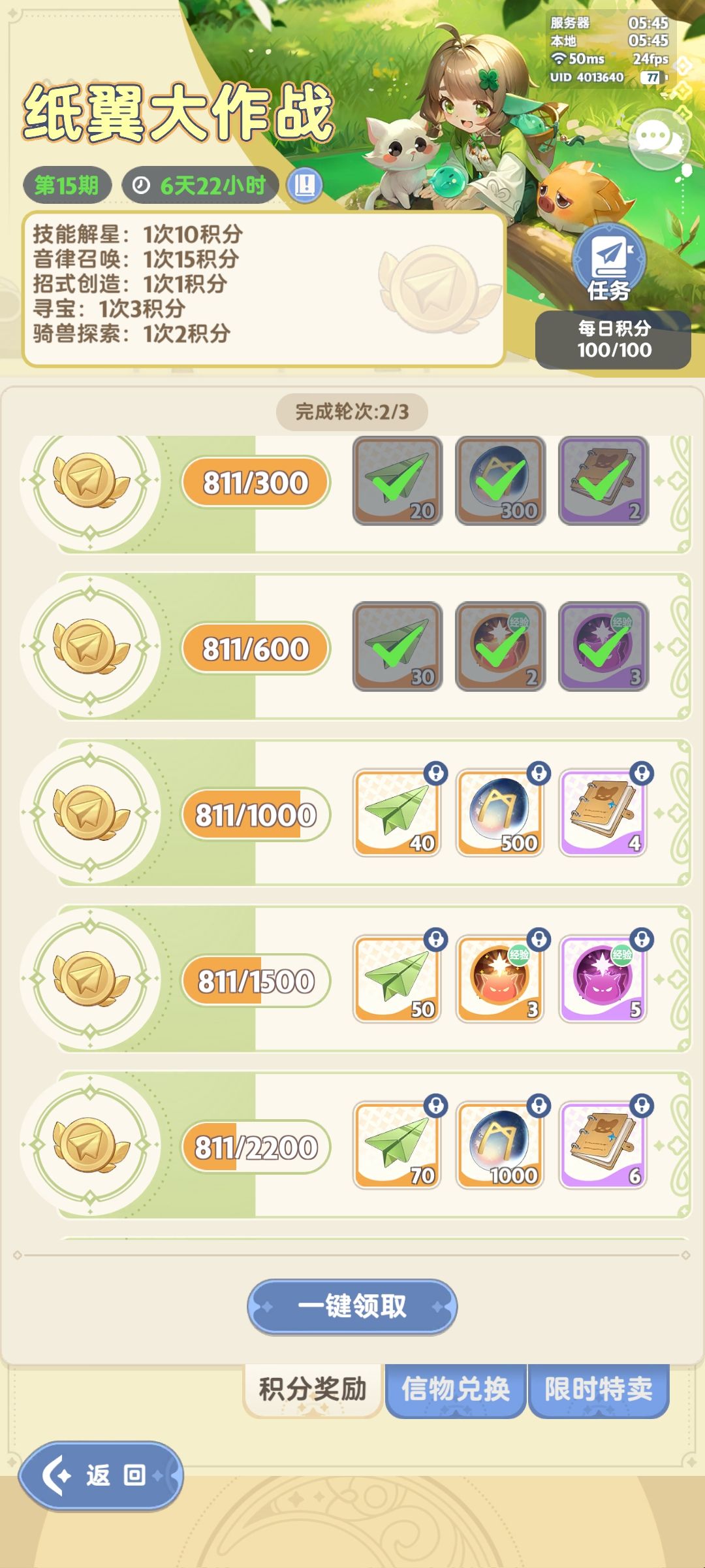 今天第15期了,纸飞机已经差不多了,清完卢恩次数+日常这期纸飞机就要满了,剩下的资源开始对后面期了,目前我只拿秘宝和宠物周,钻抽了三转专属技能池清空了,手上的技能卡也请清完了,还是升不了核心紫3,宠物粉1技能如图,闪闪大致555闪,等花园给5闪雷鸣声就可以5级了,就是不知道5级雷鸣与3级乌鸦怎样,,算起来这号挺非的,宠物up每次都接近保底数+200+以上,驹和乌鸦都只有本体,目前110碎,距离新宠还有六十多天,其中还有一次up,以及后面的纸飞机,拿下140碎完全没压力