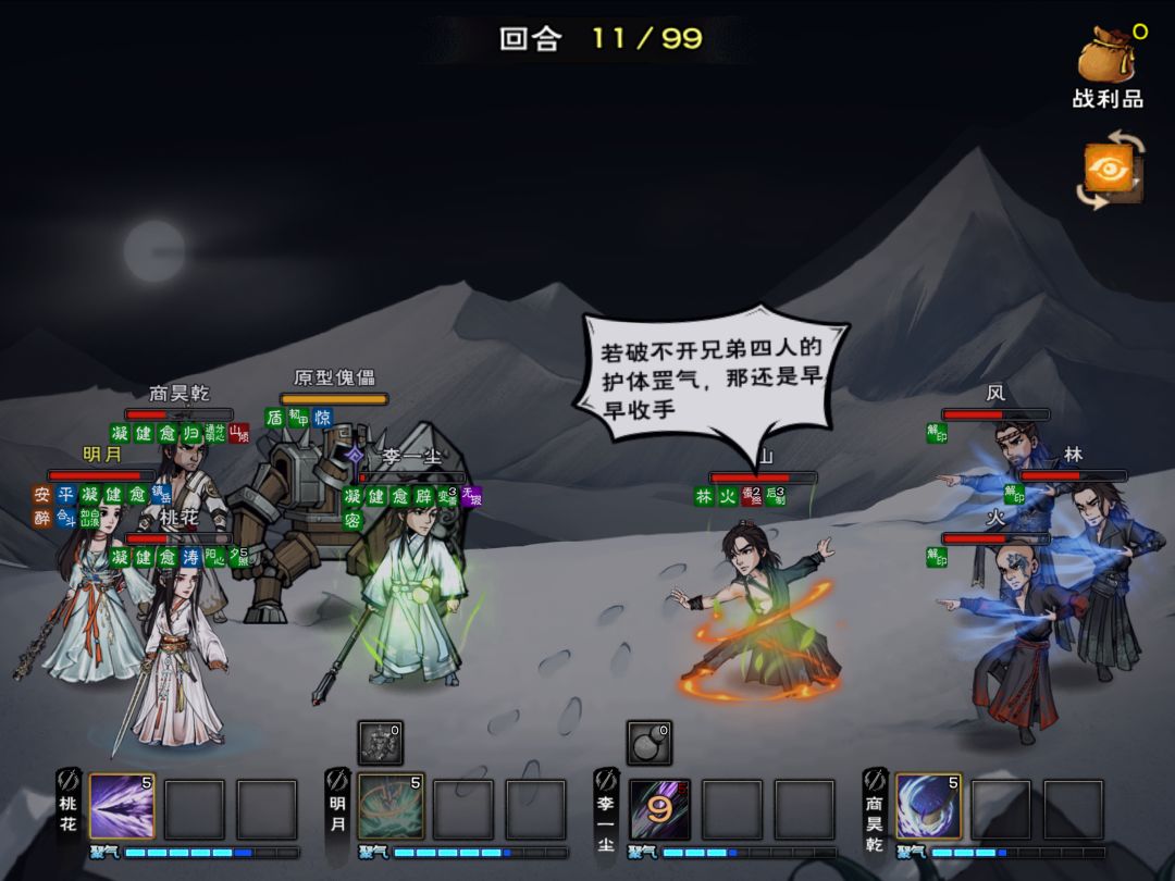 2.灌伤害就完事,怕被打晕可以sl序列,影响不是那么大,李子的酒可以帮助控制青蛾(削了之后难控血),但不开也问题不太大。我这个是sl了三四把的回合数,运气差点的话6回合能过,青蛾开不出来加上老商被晕可能得7回合以上。(被晕住无法开青蛾)