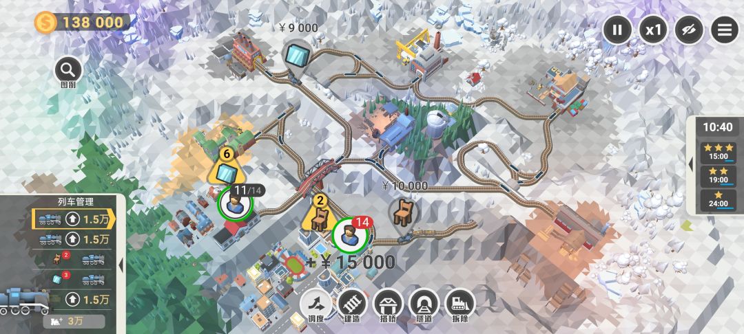 成就目标:时间在15:00内;不要摧毁轨道;不停止列车