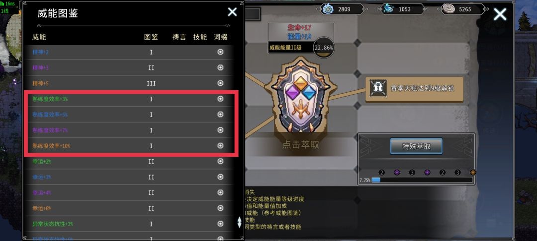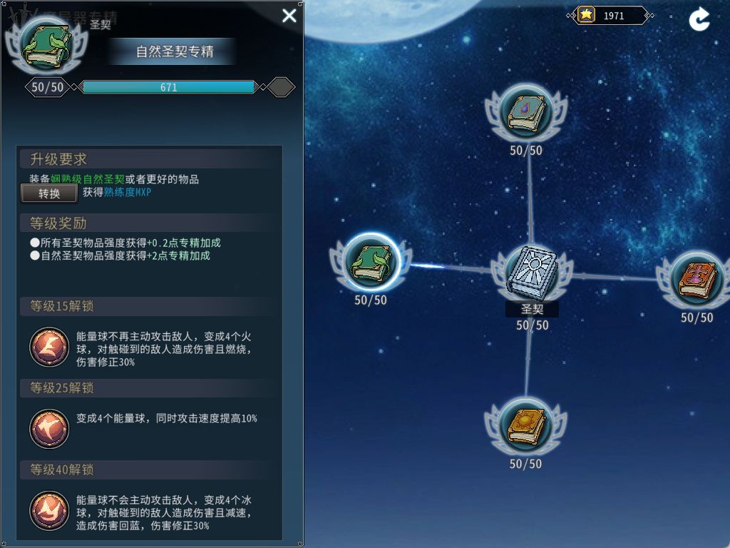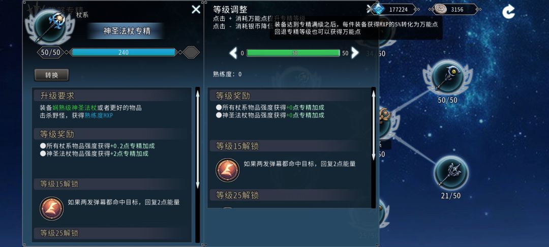 除了获得属性加成外,达到一定专精等级还能解锁对应的效果。最多只能选择1个效果。