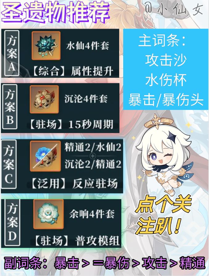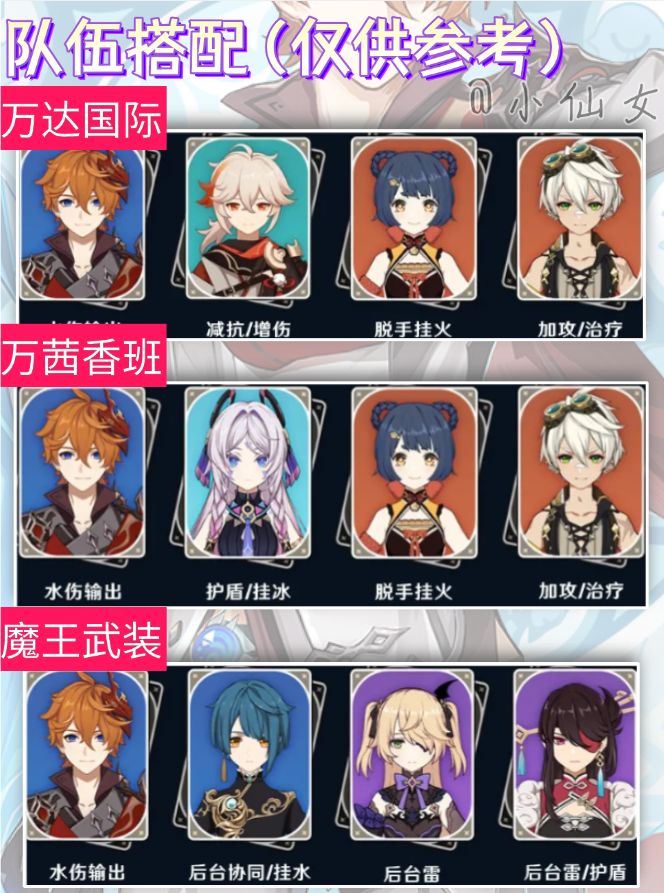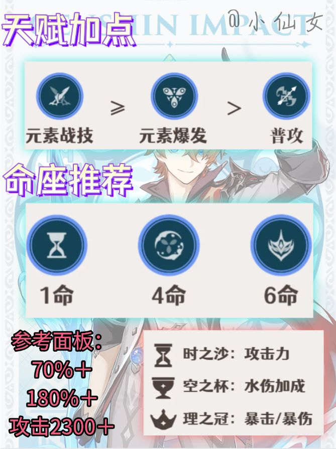 在命座方面,达达利亚在零命时输出能力足够,其后面的命座主要是对自身的输出循环机制进行的改善,若想要抽取命座则可考虑一命、四命与六命。