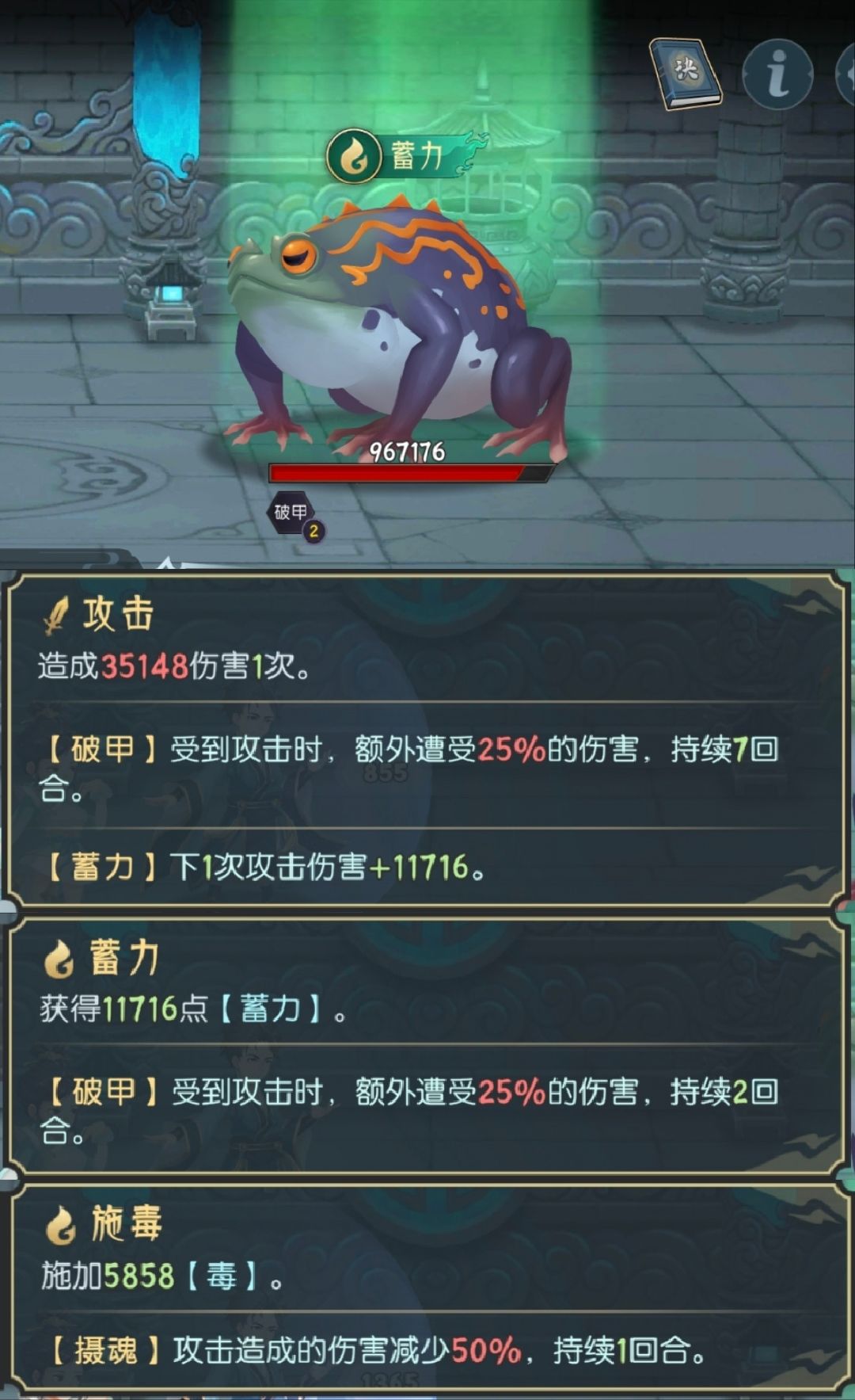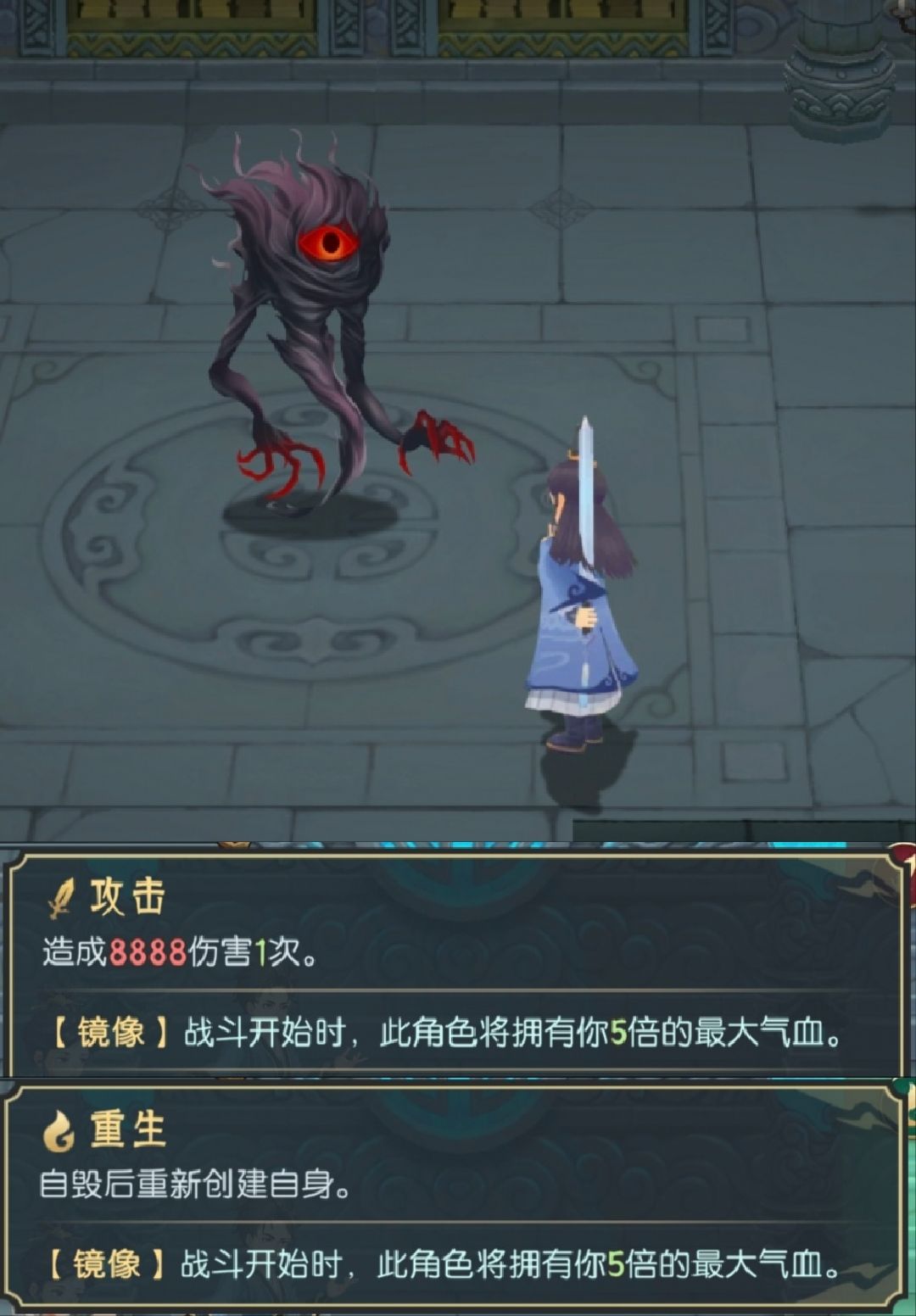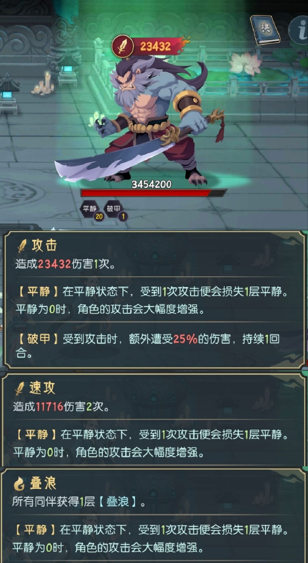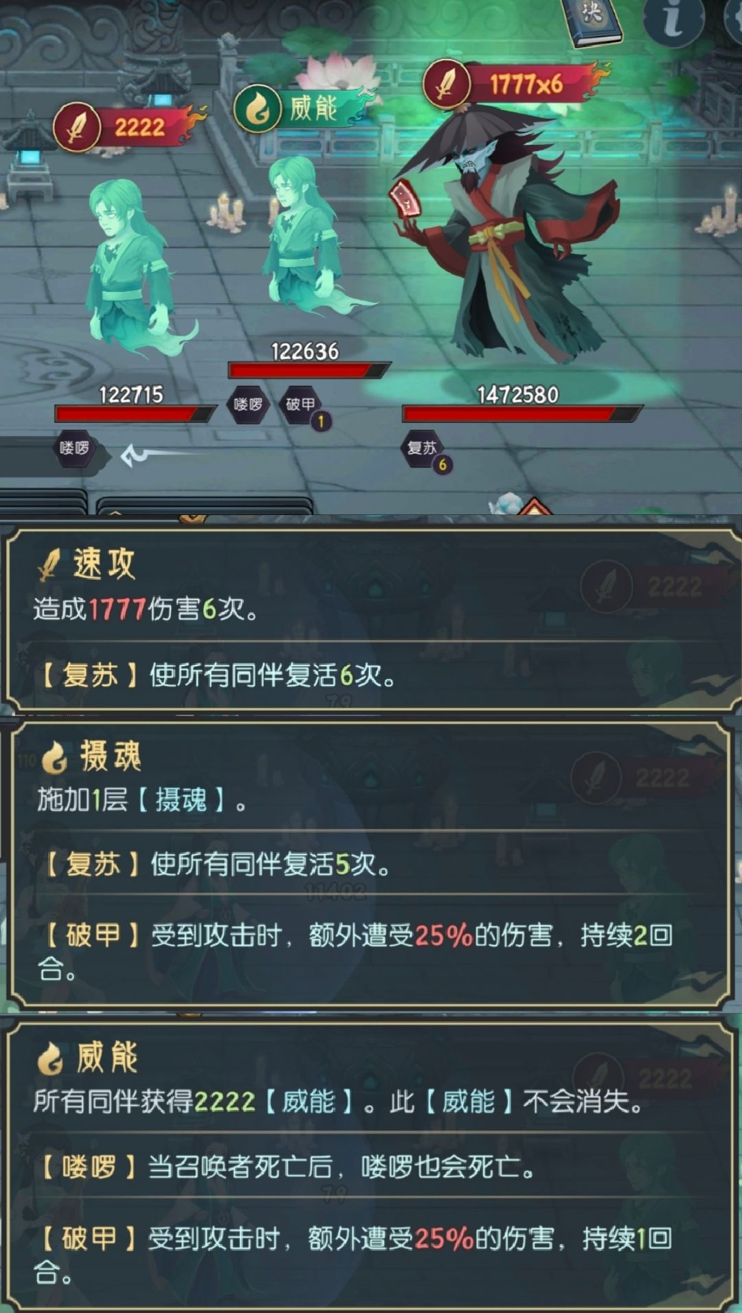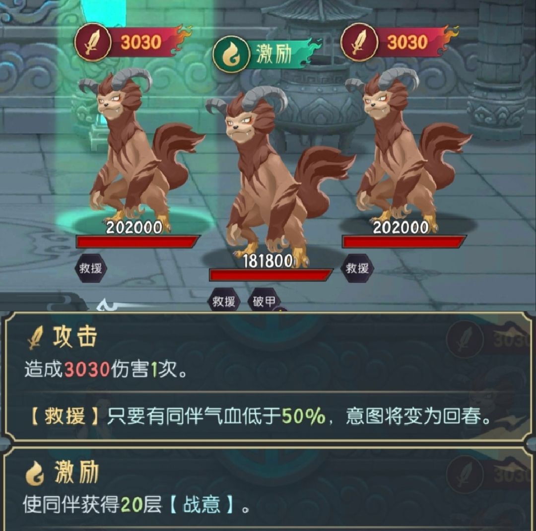 boss轮替:石攻(招魂喽啰)→防守→盾攻;喽啰:攻击(+防守?忘记了)
