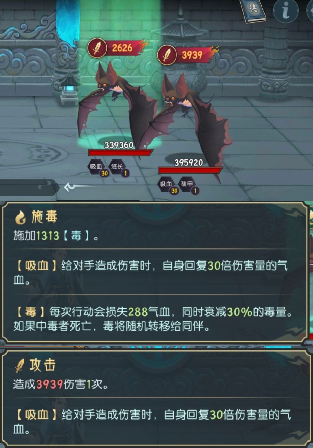 轮替:第一只攻击→施毒→攻击;第二只攻击→攻击→施毒