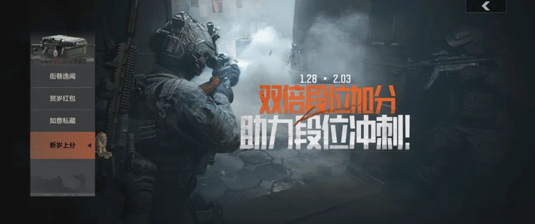 <玩法说明>活动期间开启排位模式,段位积分直接翻倍,胜利回报加倍,被淘汰时扣分规则不变,无惧风险,新年轻松冲段!
