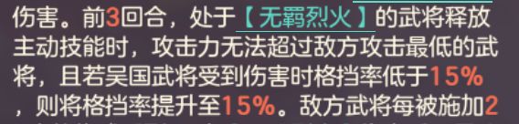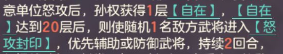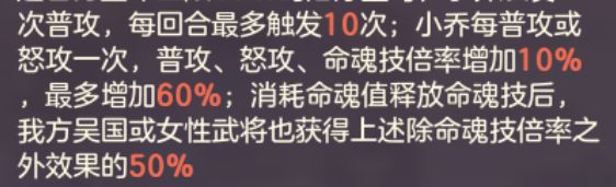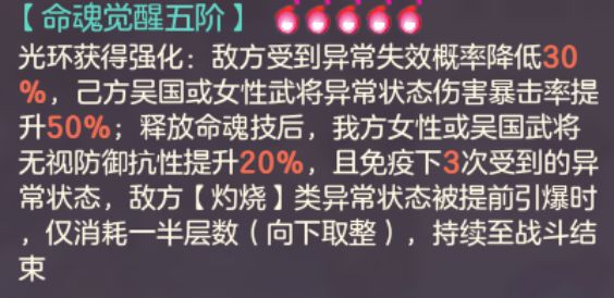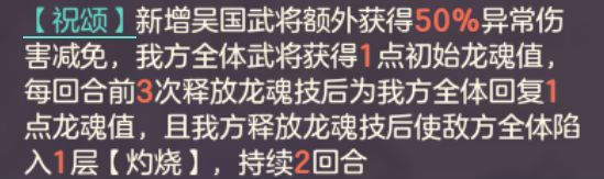 ⑤孙权:命魂孙权提供了吴国卡可观的免伤数值加成,同时高频的反击及针对真伤特化的偏斜,加强了火队应对真伤型队伍的能力。怒攻封印的效果在pvp中也偶有奇效。