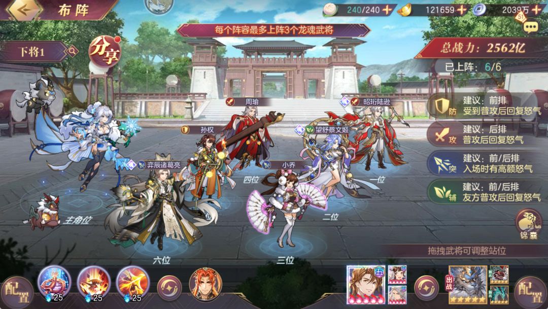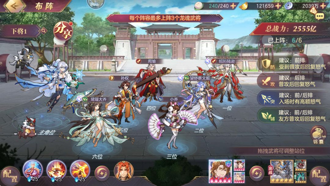 武将:昭珩陆逊(鲁肃护法)、望舒蔡文姬(阴后护法)、小乔、周瑜、孙权、弈辰诸葛亮(黄月英护法)/珺瑶大乔(孙鲁育护法)
