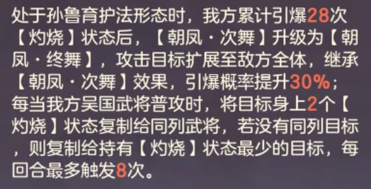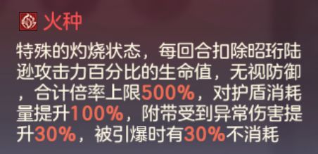 ①昭珩陆逊:鲁肃护法的昭珩陆逊提供了全队灼烧均可升级的高级灼烧效果【火种】,这是本轮火烧pvp强度拉升的核心原因之一。而根据挂火层数被动释放怒攻、兼顾铺火、高频龙魂技附带烈火襲击、怒攻额外追击等数种多动症效果,使得昭珩陆逊成为现版本火烧最核心的输出魂将。