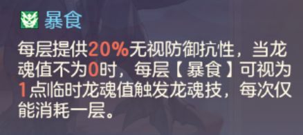 饕餮:根据衰弱类异常状态应运而生的饕餮,可以理解为冰心无支祁的全面升级版,既降低了异常状态对己方的限制能力,又提升了己方受到异常状态转化为输出的进攻能力。同时助战饕餮也提供了多点临时龙魂值。