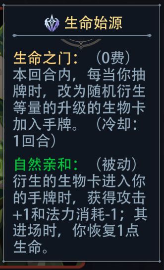 树神也属于技能切换类角色,不过和其他的技能切换类角色不同的是,树神技能一回合切换一次,下回合复原。切换技能后原来该抽几张牌,变成了随机的获得几张生物卡。