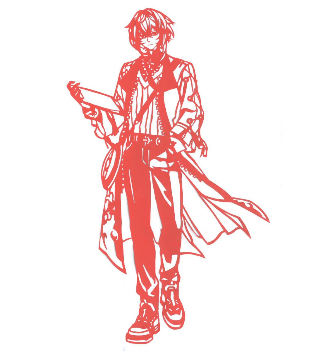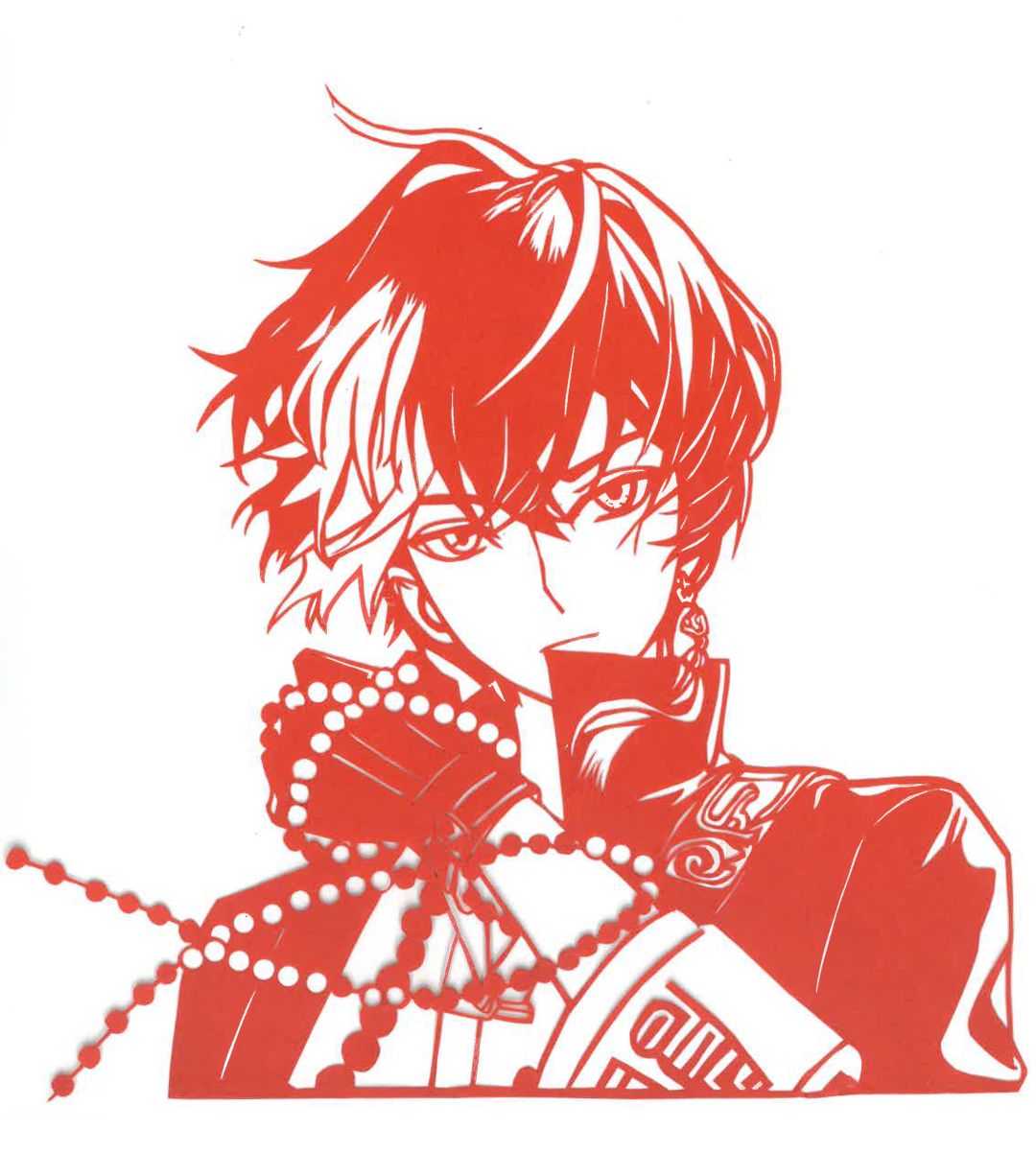 「烛」半身、「长命锁」、「斋西」剪纸作品