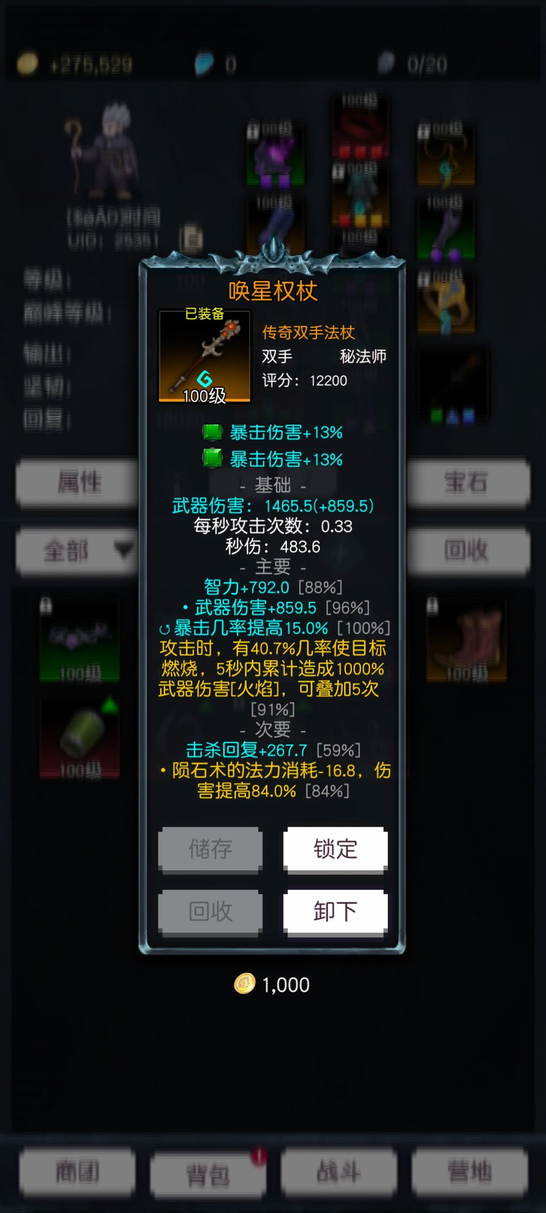 搭配:好胜头盔(减蓝头)+唤星权杖(陨石仗)核心。