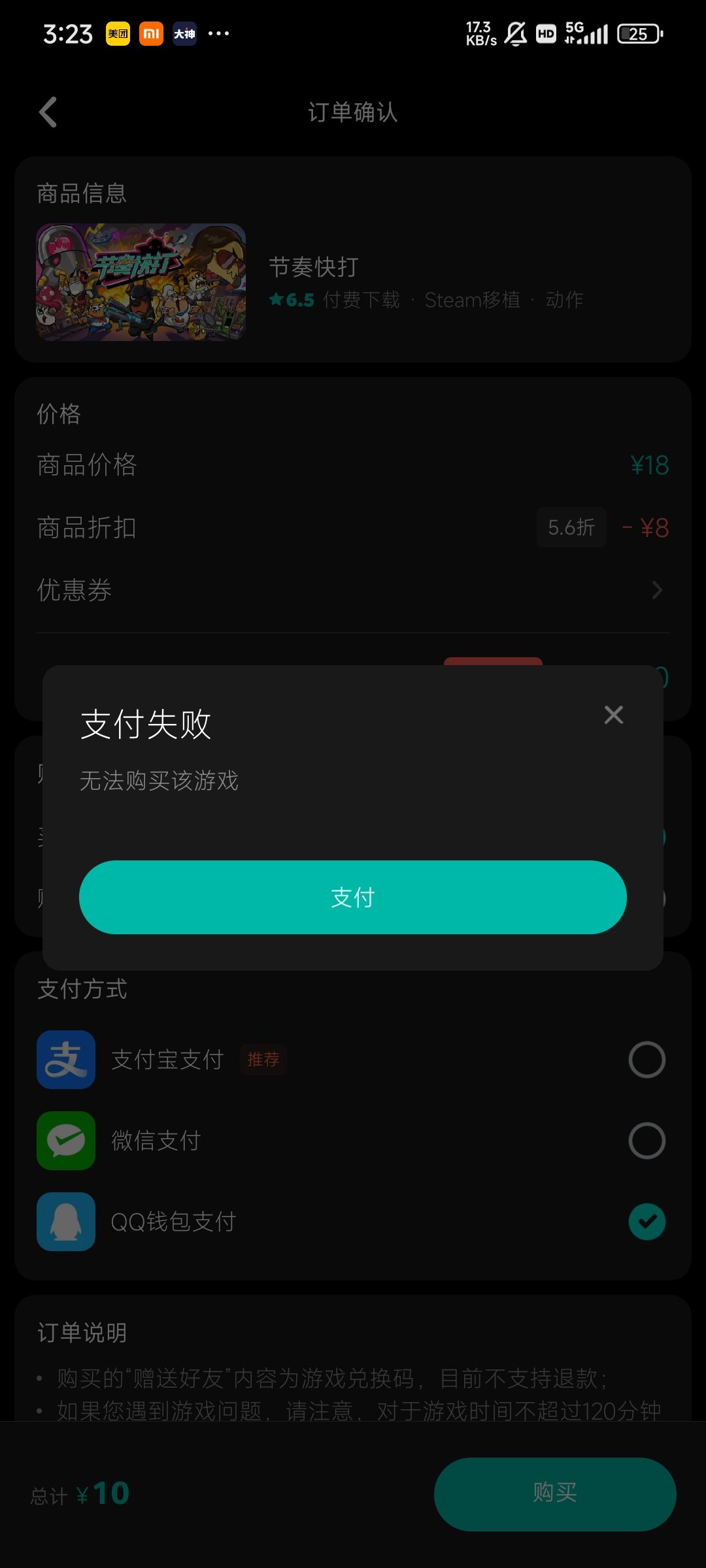支付失败