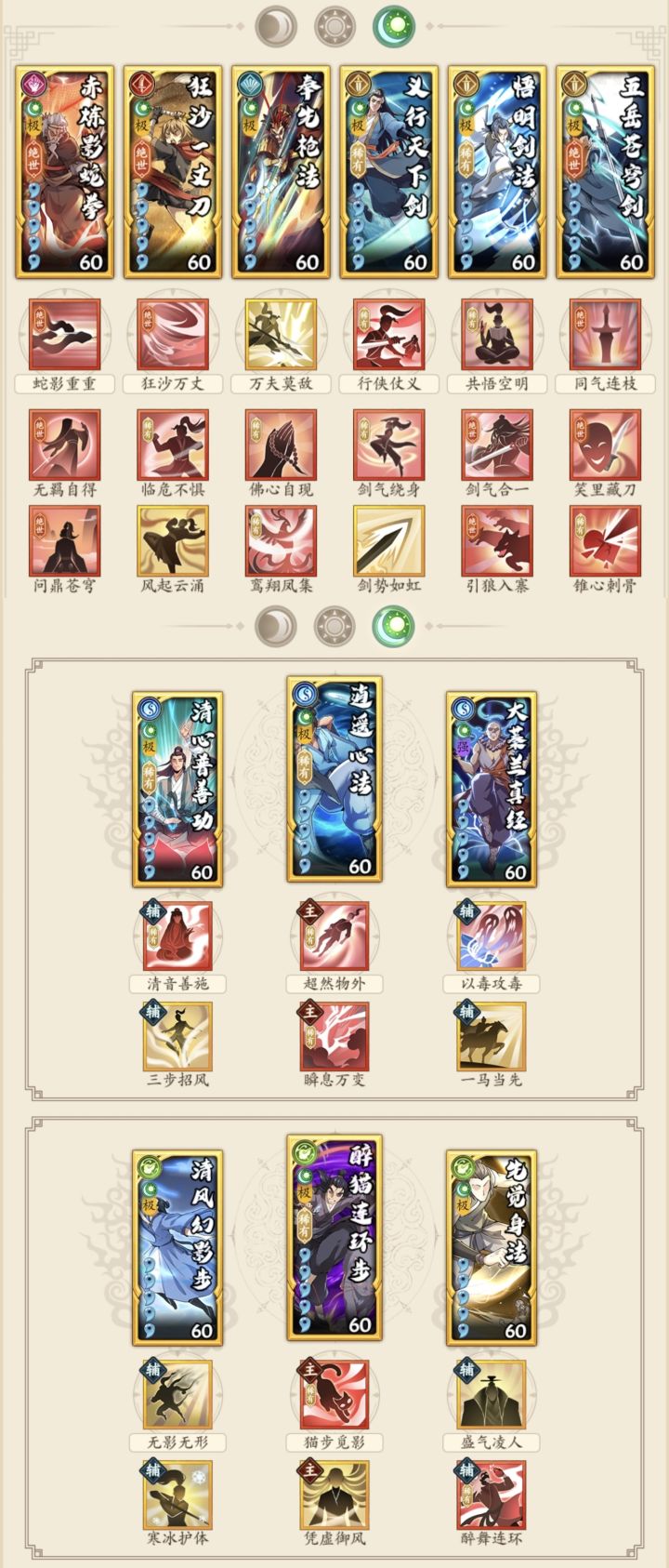 胸有成竹+如痴如醉 胸有成竹+金色耍刀 胸有成竹+金色阳息 其他如喜怒无常都行 有如痴如醉最好伤害能最大化 没有的话伤害上限低