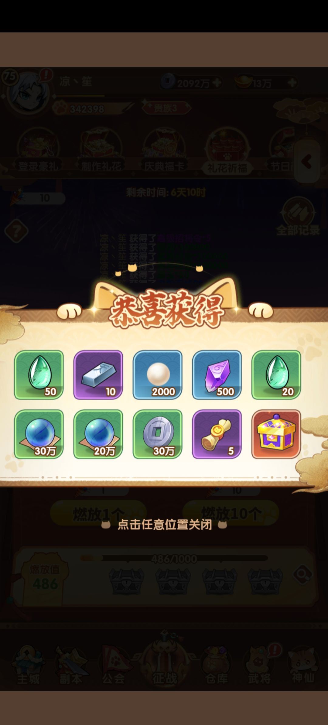 烟花活动、财神砸蛋、神宫现世,奖励丰厚,建议存几期后再抽取,考验屯货和氪金能力,多途径获取活动道具。